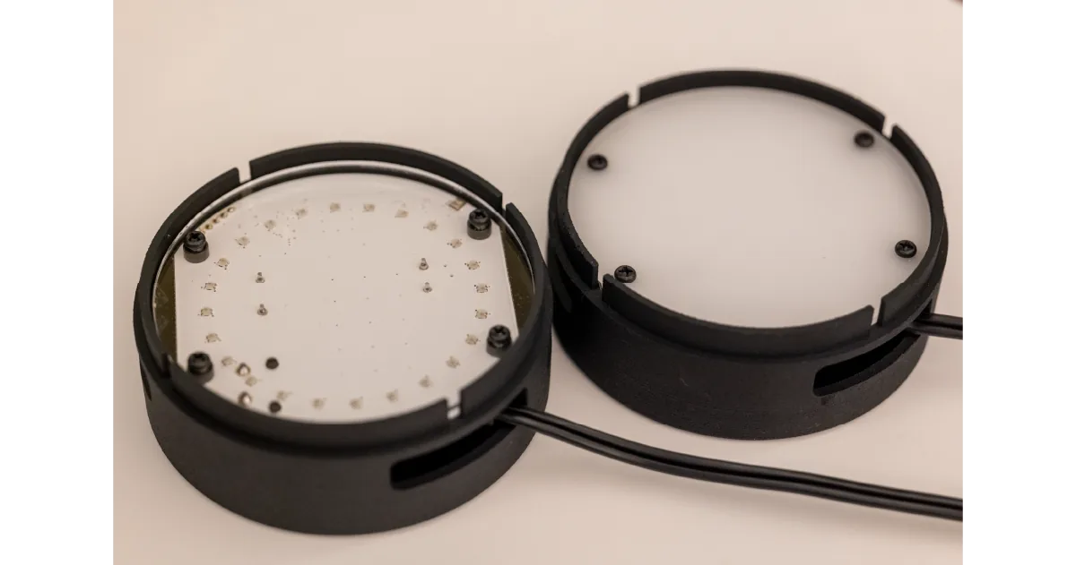 今回の施策のために新たにライトデバイスをデザイン。様々な設置方法で楽しめるように、ランプシェード型、平面ライト型、透明バブルバルーン型、3種類を制作した。ベースとなる電子回路や筐体は共通のもので、置き方や装飾でバリエーションを出せる設計になっている。また、ACDCコンバータを内蔵し、家庭用電源にそのまま繋いで利用することができる。