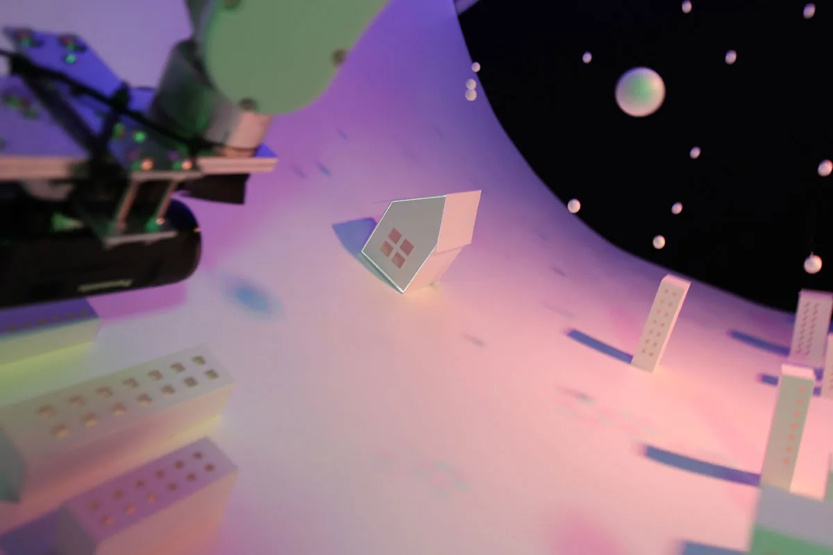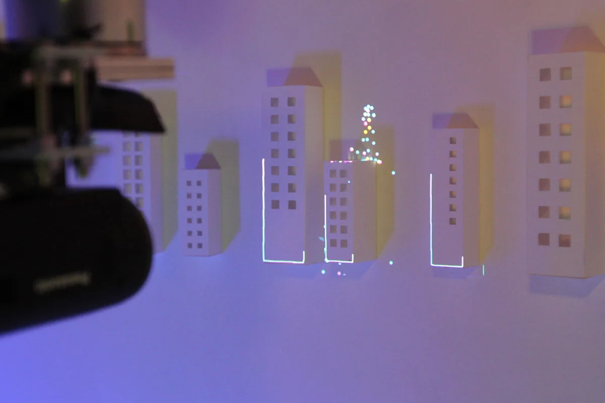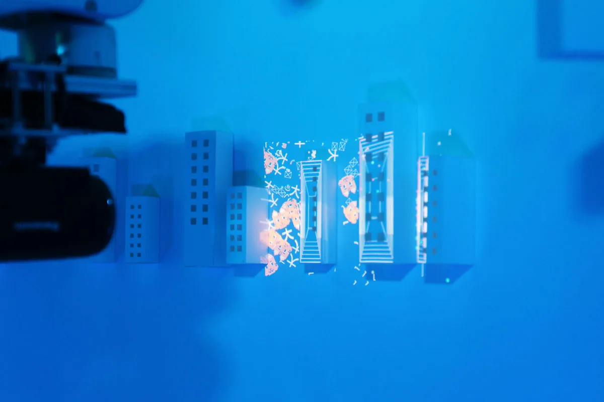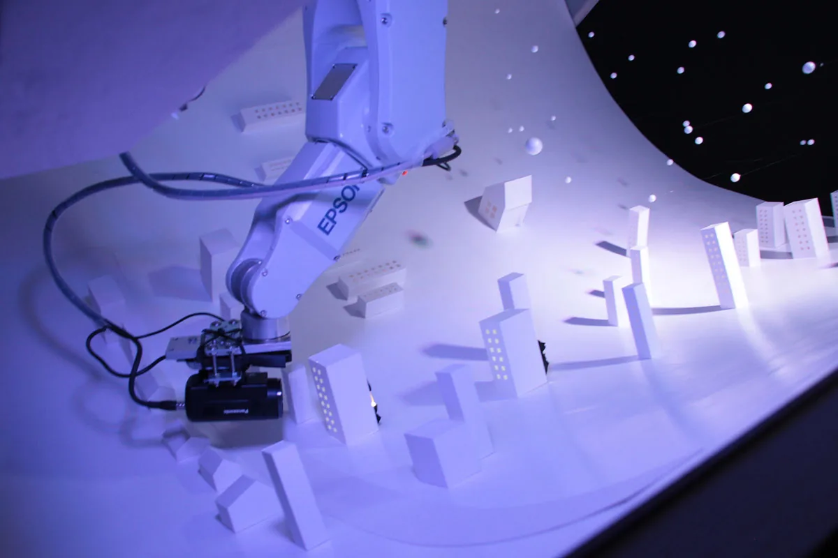 ロボットアームの先にピコプロジェクタとカメラを取付けて ミニチュア模型にプロジェクションマッピングを行ったミュージックビデオです。 事前にトレースしたミニチュア模型の形状を解析し、リアルタイムで映像を生成しているため ロボットアームの移動によってプロジェクションする位置が変化しても 模型へのマッピングがずれることはありません。 静止した物体にプロジェクションするものは 事前に映像の投影位置を調整すれば良いだけですが この様なダイナミッ…