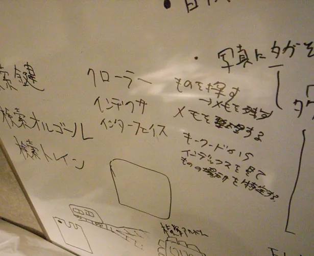 コンピューターを使わずに、検索を体験するワークショップを開催した。身近な素材を用いて検索エンジンの本質的な仕組みにフォーカスし、部屋の片付けやプリントの整理等、実生活に応用出来る様工夫を凝らした。 実際に行った幾つかの作業を紹介する。 検索ゲーム Googleイメージ検索で集めた画像をモニタに少しずつ登場させて、検索に使ったキーワードを当てると言う早押しクイズ形式のゲームを行い、情報にタグを付ける事を説明。 選んだ写真のグループ分けを…