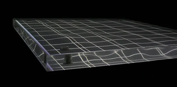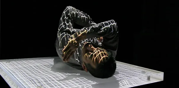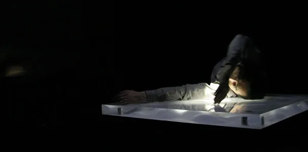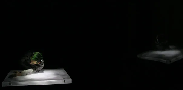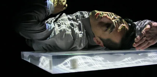 超低周波を発するためのアクリル+振動子、ダンサーの極細の動きを感知し映像、音、振動に変換するための筋電センサーを用いたダンスパフォーマンス作品。
