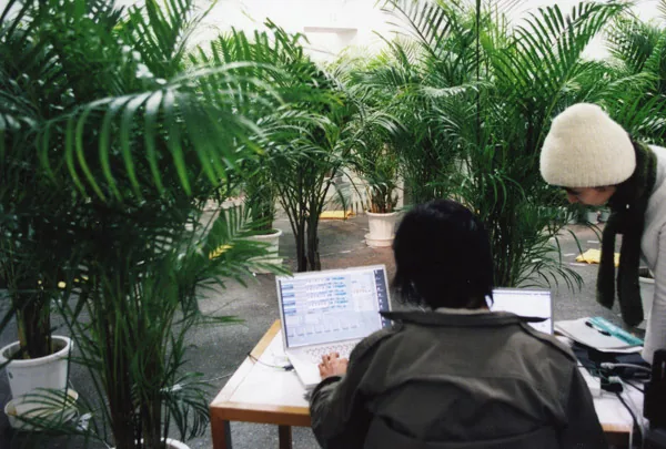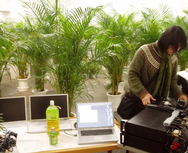 銅金裕司氏の作品「ヴォイスプラントロン2004」とのコラボレーション。 植物の電位データをサウンドに変換してライブを行った。れいしう氏が植物を触るとデータが変化するのだが、触ったものだけではなく、遠く離れたものも反応する。ネットワークを作りコミュニケーションをしている様子がパフォーマンスを通じて観客に伝える事が出来た、と思う。